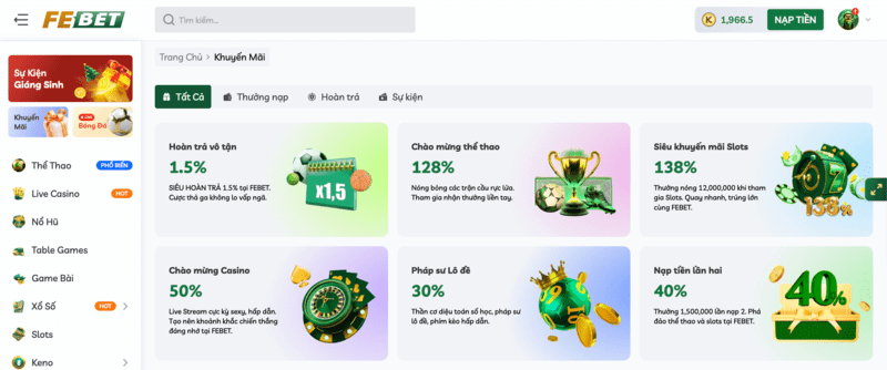 Chương Trình Khuyến Mãi Hấp Dẫn Tại FEBET
